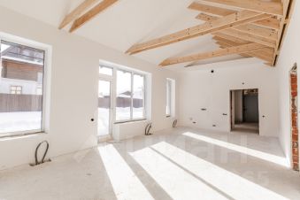 - В доме большая кухня-гостиная 41,7 кв.м с потолками до 5,5 м, три спальни, три полноценных санузла и две гардеробные.